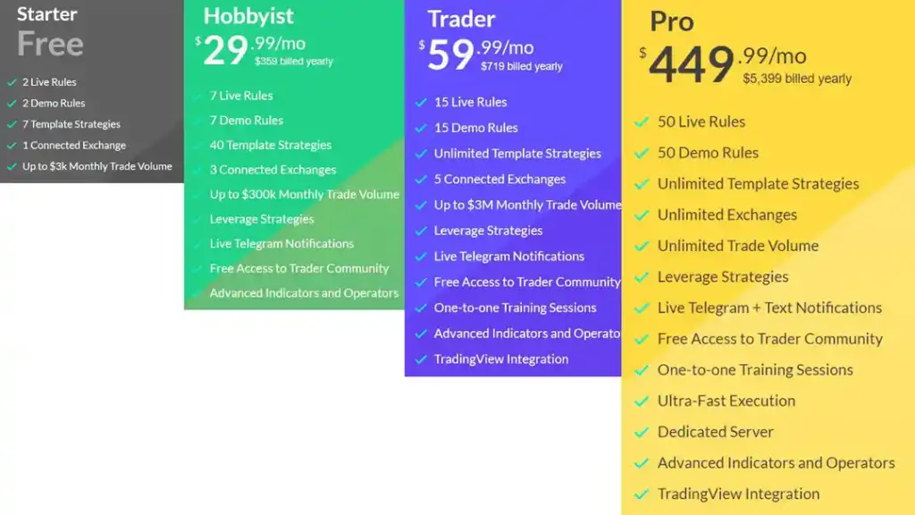 Both companies incur monthly fees for using the platforms’ features to the fullest. Coinrule offers four different options, which are: